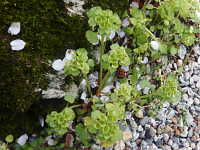 | 多年草 草丈:10cm〜20cm 花期:3月〜4月 生育場所:林縁、低地の湿った石垣など 特徴:花序は緑色の6〜10花を密につけ、花後に開裂して杯状になった果実内に茶色い種子が多数できる。葉はイチョウに似た形。 名前の由来:花後に開裂して杯状になった果実の形が、昼間の猫の瞳孔(細い線状)に似ているため、「ネコノメソウ」。山地に生えるため「ヤマ」。 |