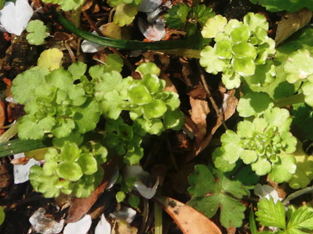 ヤマネコノメソウ 開裂前の果実(直径4mm)と開裂後の杯状の果実(直径6mm)