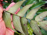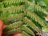 | ・シダ植物の科の一つで、中型から大型。軸が太く、羽片が多いなど、男っぽい印象を受ける。 ・根茎:直立するか斜めに立ち、あるいは横に這う。 ・葉:単葉から羽状複葉。羽片は被針形から広被針形。 ・胞子のう群:葉裏につき、丸い形になるものが多い。 |