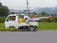 | 農薬散布には種々の方法があります。なお、近年水稲では、農薬の飛散の心配がなく、省力的な長期残効性育苗箱粒剤の施用が防除の中心となっています。 |