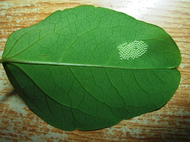 アケビの葉のオビヒトリ卵塊