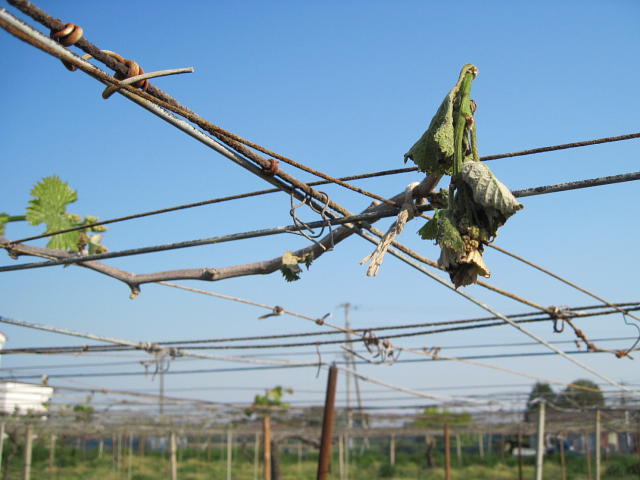 ブドウトラカミキリ 加害された枝では新葉が伸びない