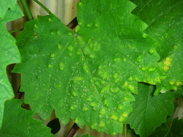 ブドウハモグリダニ 被害葉表