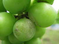 被害:果実や葉にうどんこ状の病斑を生じる。