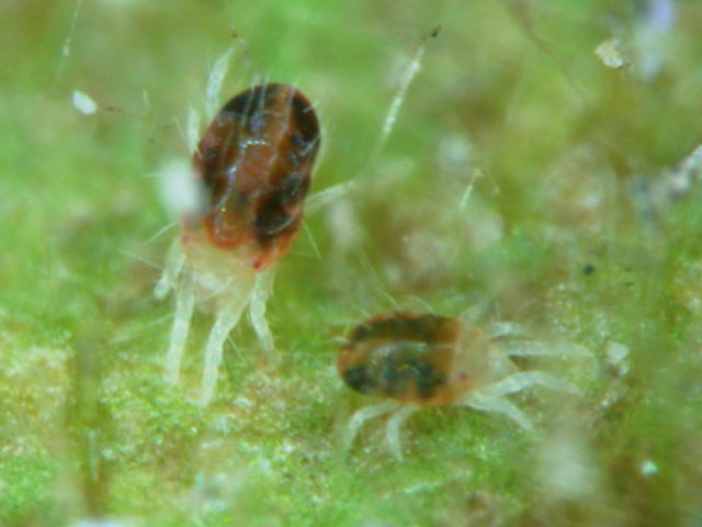 カンザワハダニ第1若虫(体長0.2mm)及び第2若虫(体長0.3mm)