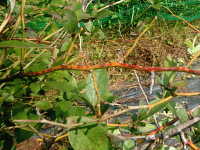 | 発生時期:9月〜12月 病原:糸状菌(かび) 伝染方法:発病葉上の病原菌が伝染源となる。 被害:枝に赤い病斑を生じ、その枝の葉は早期落葉する。病斑内には黒色小粒点が点在する。また、症状が進展すると枝枯れになる。 |