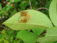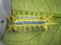 | 発生時期:7月、9月 被害:幼虫による葉の食害 参考:有毒なトゲを持っているため、触れると電撃的な痛みを感じる。 ブルーベリーは病害虫被害が少ないが、この害虫は多発生しやすい。 |