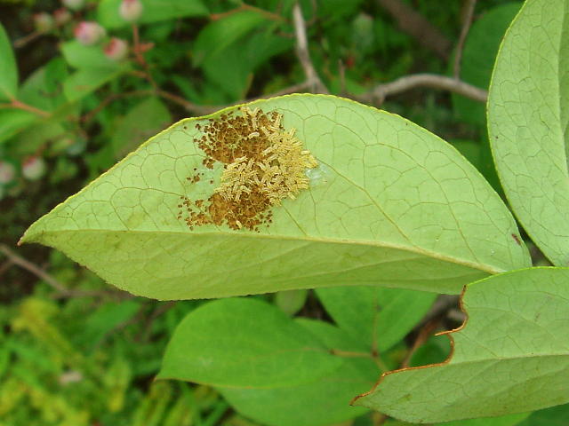 ヒロヘリアオイラガ 若齢幼虫による被害葉