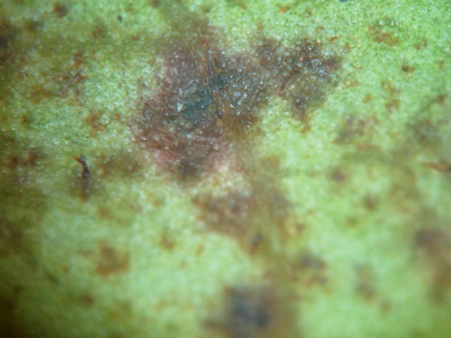 赤斑症状 葉表の紋斑はやや盛り上がる