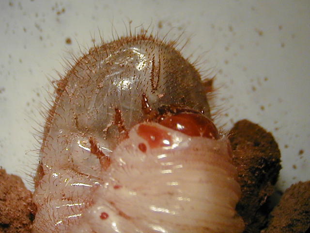 シロテンハナムグリ 老齢幼虫腹部の刺毛列は長い楕円形で明瞭