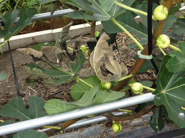 アルタナリア属菌による葉枯れ 内側に巻いた葉