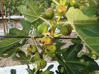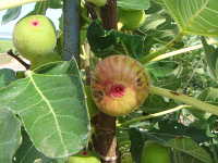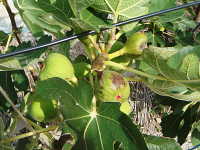 台風等により強い風が吹くと、収穫期のイチジクでは葉が当たり果実にすり傷ができる。