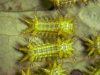 | 発生時期:7月、9月 被害:幼虫による葉の食害 参考:有毒なトゲを持っているため、触れると電撃的な痛みを感じる。 |