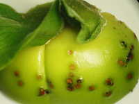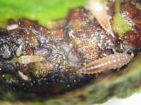 | 発生時期:4月〜6月 被害:幼虫の吸汁による巻葉、果実の吸汁痕 |