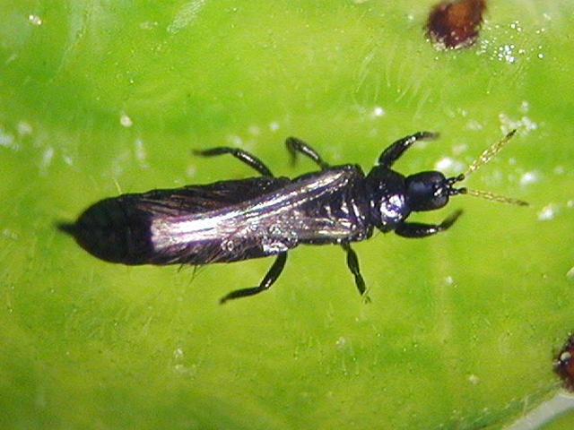 カキクダアザミウマ成虫(体長2.2mm)