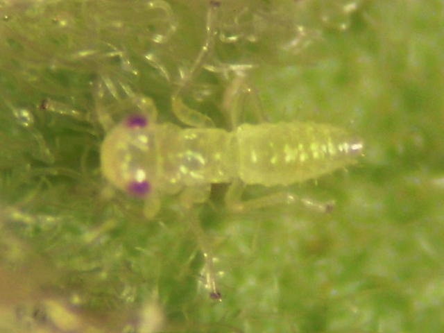カキノヒメヨコバイ2齢幼虫(体長0.9mm)