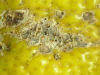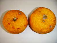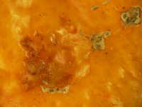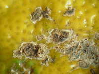 被害:ユズやイヨカンに発生し、茶褐色の陥没病斑や灰白色のコルク化した隆起病斑を生じる。