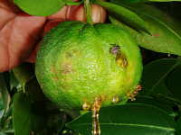 シシユズの寄生果 吸汁箇所は窪む |