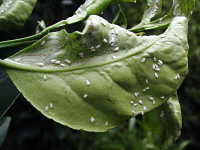 | 発生時期:5月〜9月 被害:成虫及び幼虫による吸汁害、排泄物によるすす病の発生 |