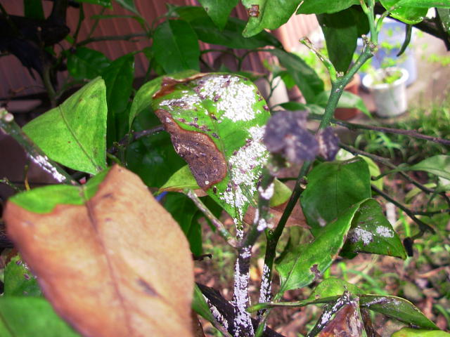 ヤノネカイガラムシ 寄生枝葉