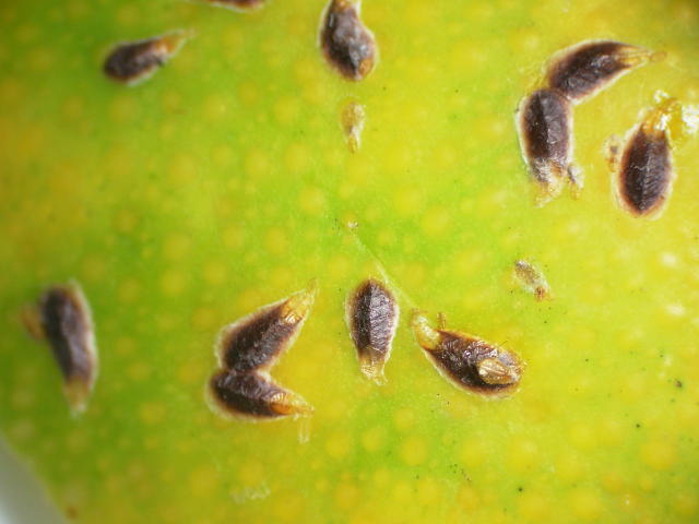 ヤノネカイガラムシ雌成虫(体長3mm)