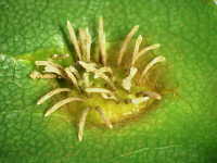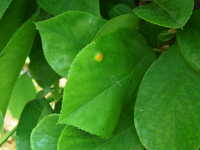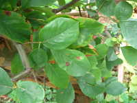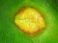 | 発生時期:4月〜5月 病原:糸状菌(かび) 伝染方法:ビャクシン類上の病原菌が伝染源となる。 |