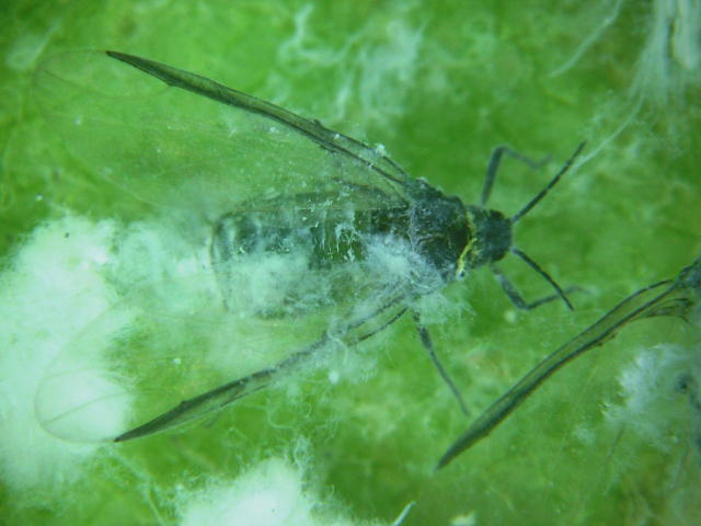 ハマキワタムシ類有翅成虫(体長3.5mm、全長5mm)
