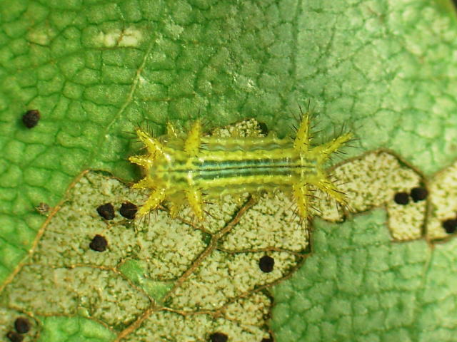 ヒロヘリアオイラガ中齢幼虫(体長6mm)