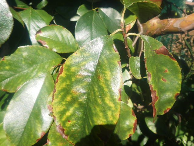 白かび斑点病 褐色病斑は葉縁に多い