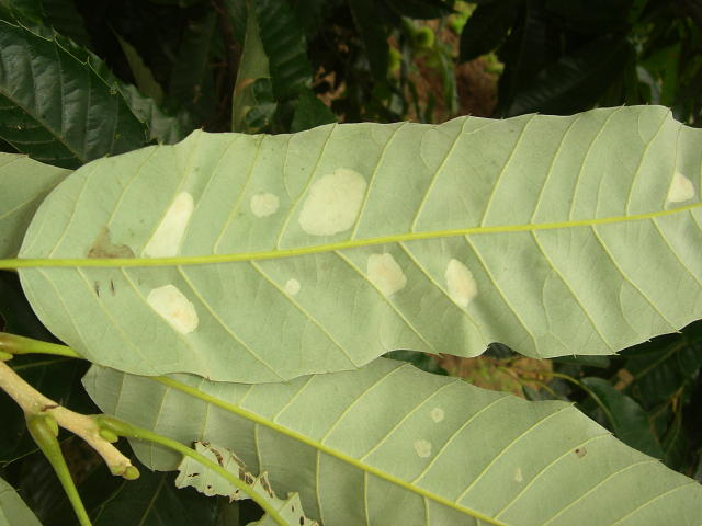 ハスオビキンモンホソガ 葉裏食害痕(初期)