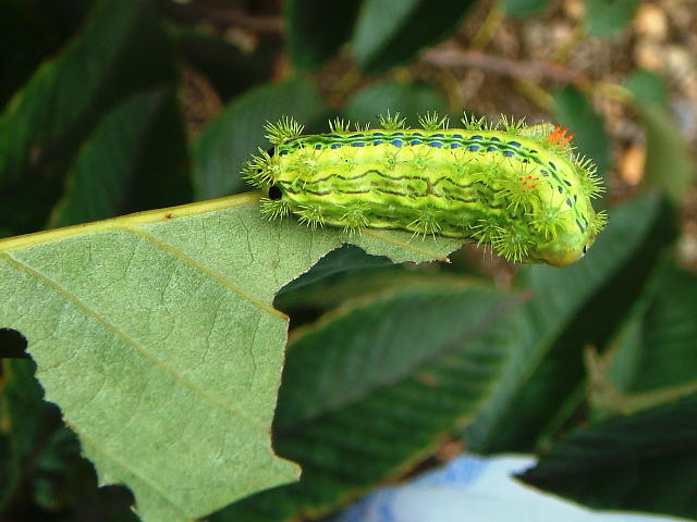 ヒロヘリアオイラガ老齢幼虫による被害葉