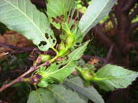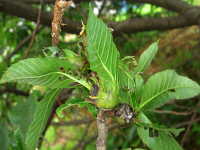 | 発生時期:6月〜7月 被害:産卵された芽が幼虫の生育に伴い肥大して虫こぶとなる。 |