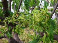 被害::成虫及び幼虫による吸汁害 参考:葉を巻き、中にコロニーを作る