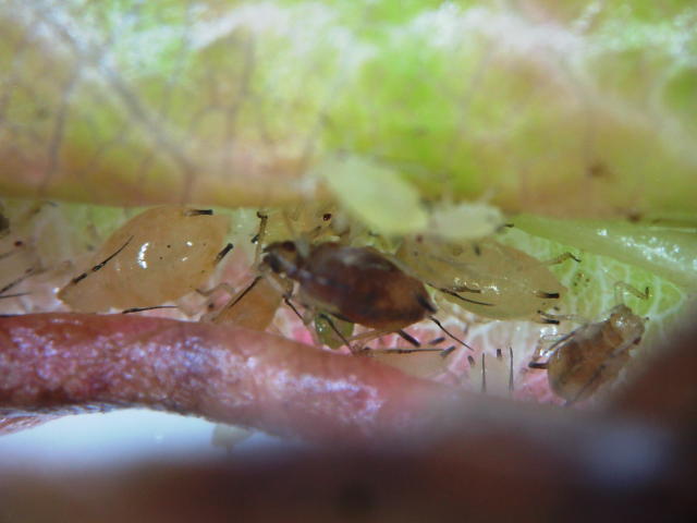 カワリコブアブラムシ成虫(体長1.8mm、薄黄色の個体)