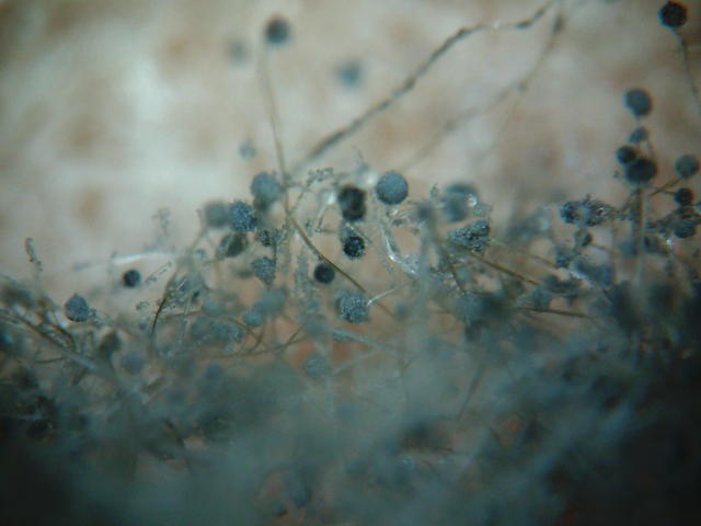 黒かび病 リゾープス属菌の灰色の胞子のう