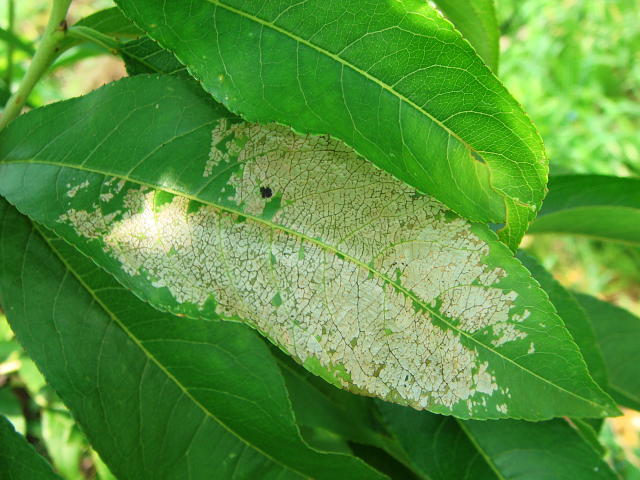 クワゴマダラヒトリ若齢幼虫による被害葉
