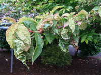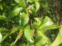 伝染方法:葉の病原菌が飛散して枝に付着し、翌年降雨により分散し、感染する。