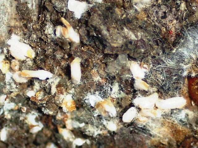 ウメシロカイガラムシ 雄繭の集まり