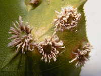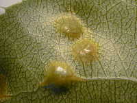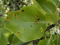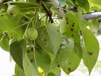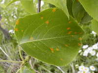 | 発生時期:4月〜5月 病原:糸状菌(かび) 伝染方法:ビャクシン類上の病原菌が伝染源となる。 |