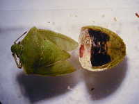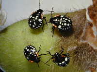 被害:成虫及び幼虫の吸汁による果実の吸汁部陥没