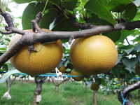 | お盆の時期に収獲できる幸水を中心に、彩玉、豊水、あきづき、新高などが栽培されている。 |