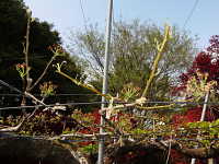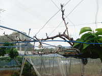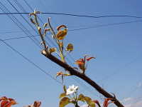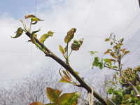 被害:一部の枝について、萌芽が遅れ、展開した葉が萎縮し、果実が小さくなる。