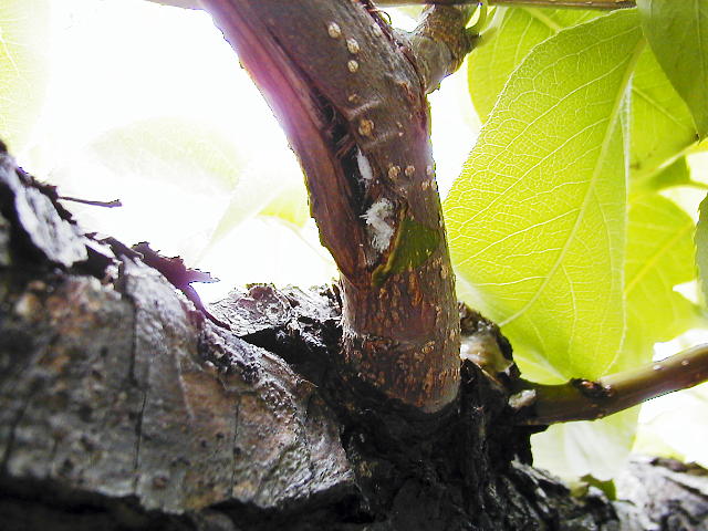 クワコナカイガラムシ 枝の窪んだ部分に好んで寄生