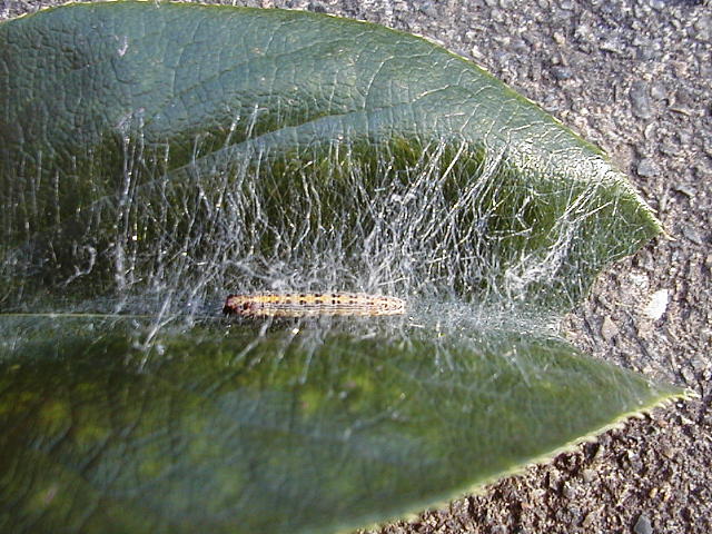 ナカアオフトメイガ幼虫による被害葉