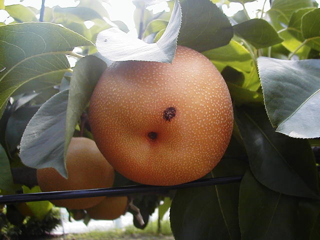 ナシヒメシンクイ 幼虫は果実の脇部から食入することもある