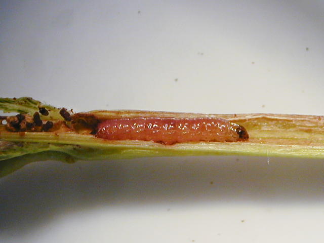 ナシヒメシンクイ ウメ新梢内に食入した幼虫(体長11mm)