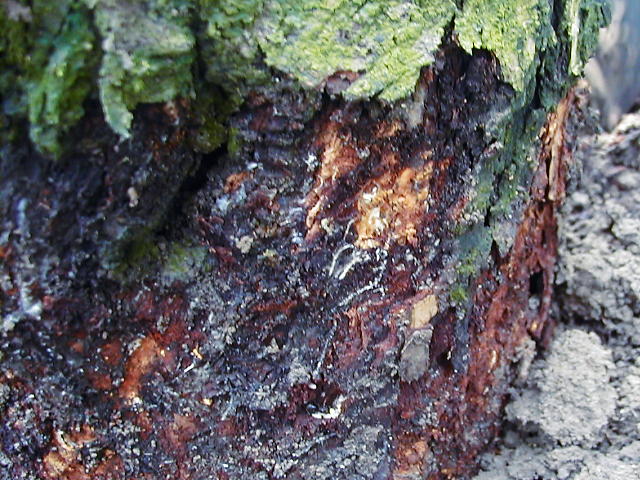 白紋羽病 発病樹地際の菌糸