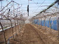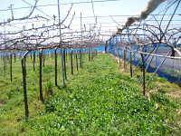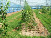 | 神奈川県が平成17年に開発した栽培方法。苗木を密植して先端を隣の苗木の肩の部分に接ぎ木し、直線につながった1本の樹に仕立てる。 @2年苗は2年目から収穫が始められ、初期収量が多い、A管理作業が単純化でき、省力的で、パート従業員の導入がしやすい等のメリットがあり、徐々に増加している。 苗木の本数は多く必要となる。(2m×4m植えで125本/10a、通常の2倍) |
