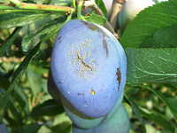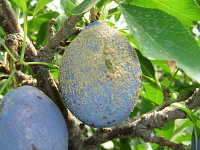 被害:成熟期に果実に灰色の病斑を生じて、果実が腐る。