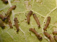 | 発生時期:周年(成虫の発生及び産卵は8月〜9月) 被害:幼虫による葉の食害 |